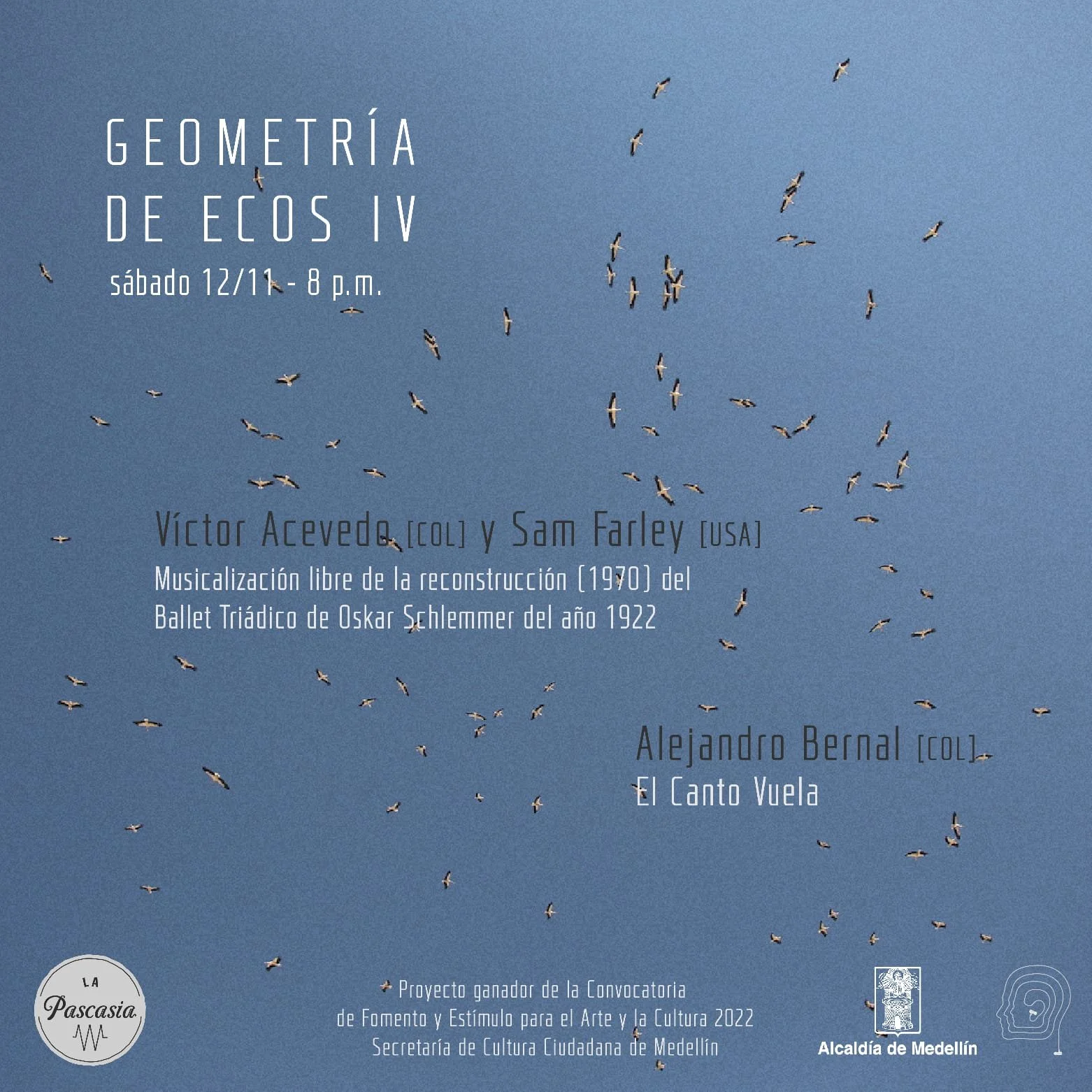 CONCIERTO GEOMETRÍA DE ECOS 8 PM / ENTRADA LIBRE sábado, 12 de noviembre de 2022 8:00 p. m. 9:30 p. m. La Pascasia Cra. 42 # 46-46 medellín colombia (mapa) Google Calendar ICS