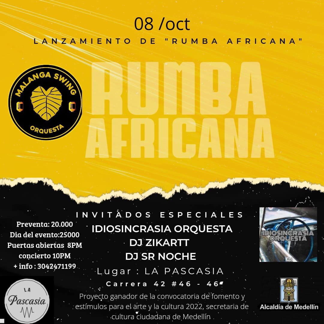 CONCIERTO MALANGA SWING ORQUESTA 10 PM / $25.000 sábado, 8 de octubre de 2022 10:00 p. m. 11:45 p. m. La Pascasia Cra. 42 # 46-46 medellín colombia (mapa) Google Calendar ICS