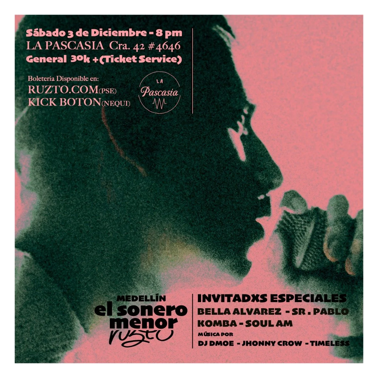 CONCIERTO RUZTO PRESENTA: EL SONERO MENOR 8 PM / $30.000 sábado, 3 de diciembre de 2022 9:30 p. m. 11:55 p. m. La Pascasia Cra. 42 # 46-46 medellín colombia (mapa) Google Calendar ICS
