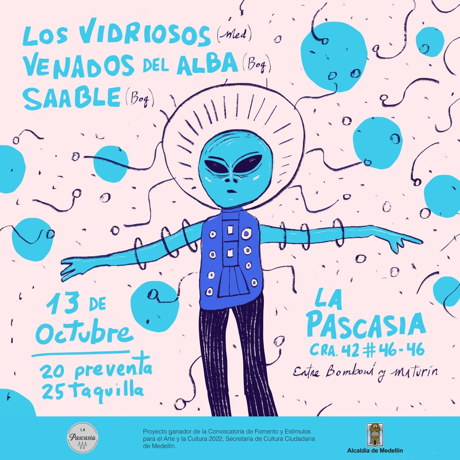CONCIERTOLOS VIDRIOSOS, VENADOS DEL ALBA, SAABLE 9 PM / $25.000 jueves, 13 de octubre de 2022 9:00 p. m. 10:05 p. m. La Pascasia Cra. 42 # 46-46 medellín colombia (mapa) Google Calendar ICS