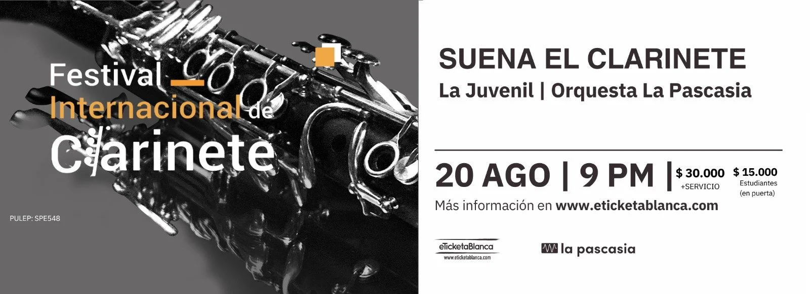 El miércoles 20 de agosto ¡Suena el clarinete en La Pascasia! Nos alegra de verdad contarles que acogeremos en el edificio al Festival internacional de clarinete que celebra la Universidad de Antioquia, La Juvenil tendrá el honor de interpretar clásicos tropicales del Caribe colombiano acompañando a importantes solistas de este instrumento que goza de arraigo profundo en nuestra cultura y de maravillosa salud en el ámbito académico.