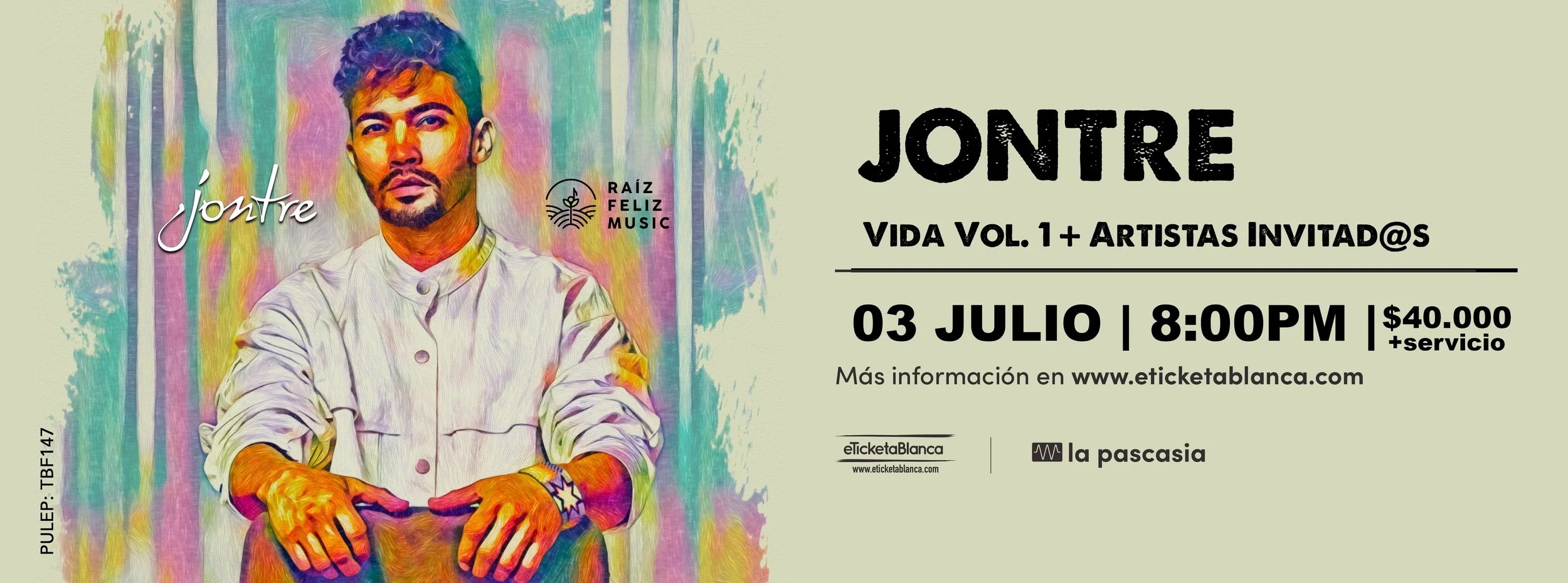 Jontre - VIDA vol. 1 jueves, 3 de julio de 2025 8:00 p. m. 11:00 p. m. La Pascasia 43-88 Calle 47 Medellín, Antioquia, 050016 Colombia (mapa) Google Calendar ICS COMPRAR