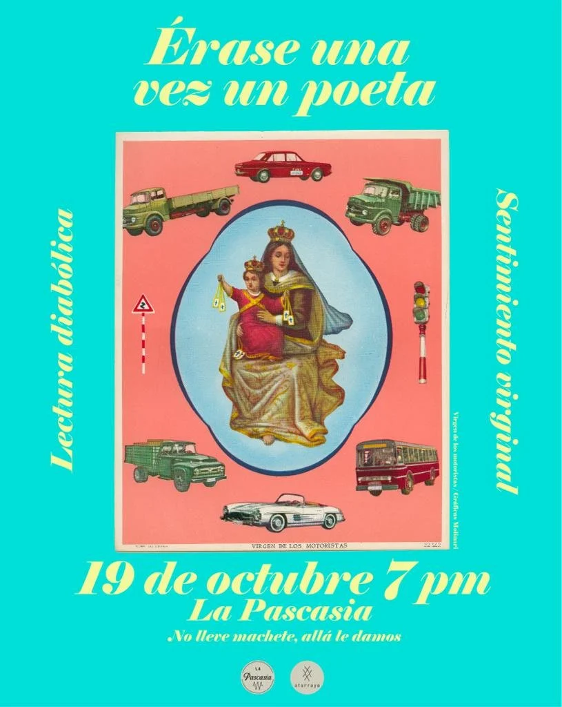 PRESENTACIÓN LIBRO ÉRASE UNA VEZ UN POETA DE SANTIAGO RODAS 7 PM / ENTRADA LIBRE miércoles, 19 de octubre de 2022 7:00 p. m. 8:15 p. m. La Pascasia Cra. 42 # 46-46 medellín colombia (mapa) Google Calendar ICS