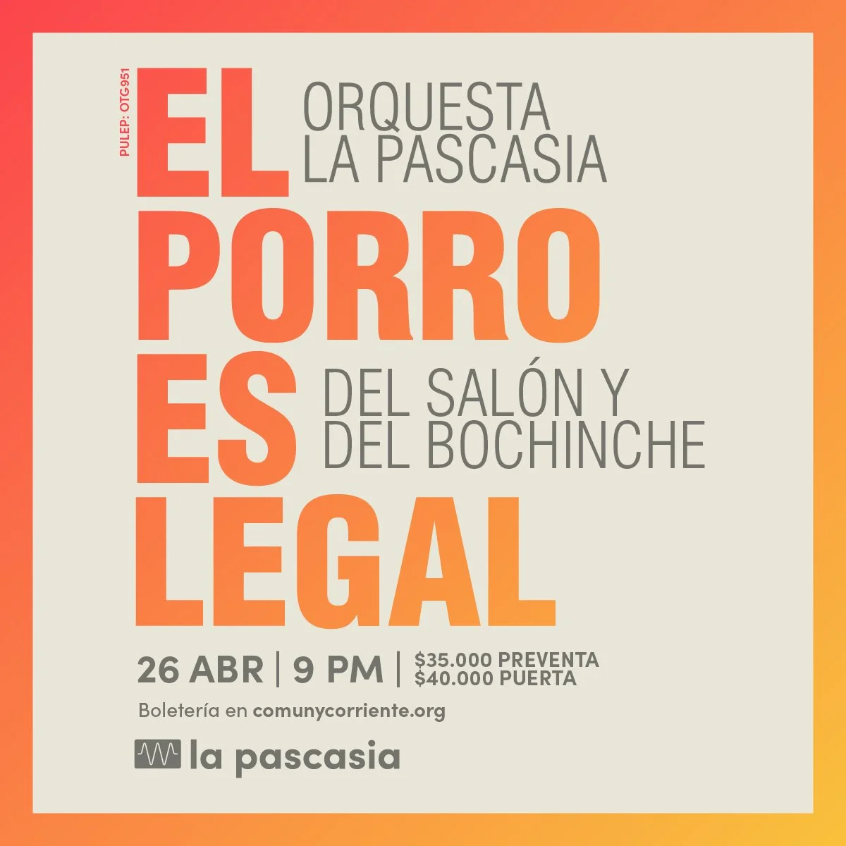 En el marco de El Porro es Legal, Orquesta La Pascasia presenta: “Del salón y del bochinche”.